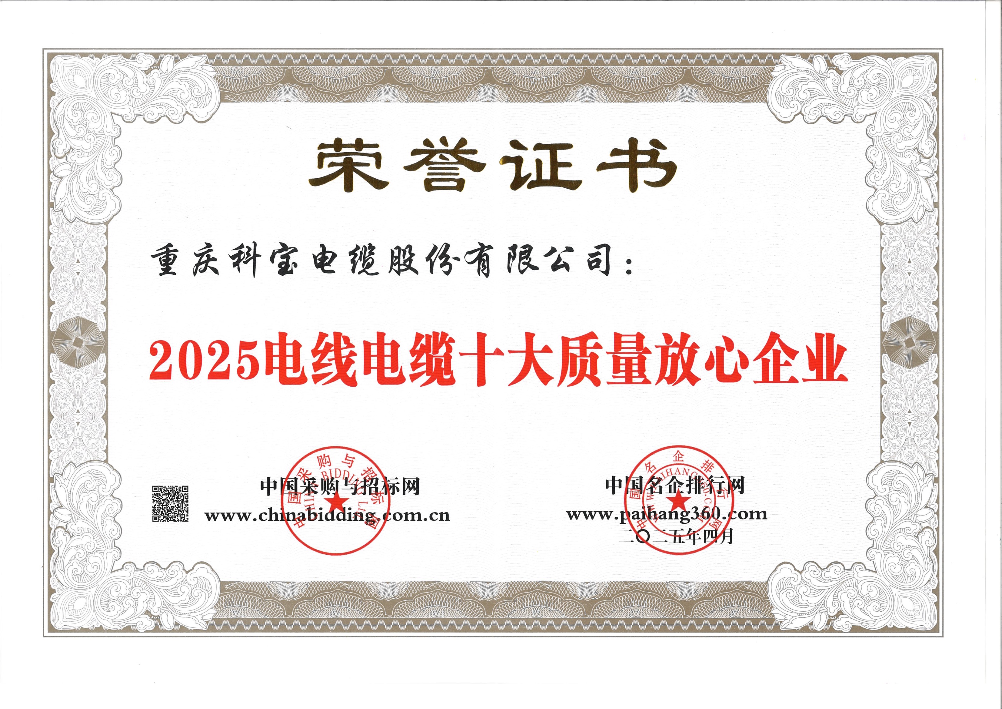 2025電線電纜十大質量放心企業
