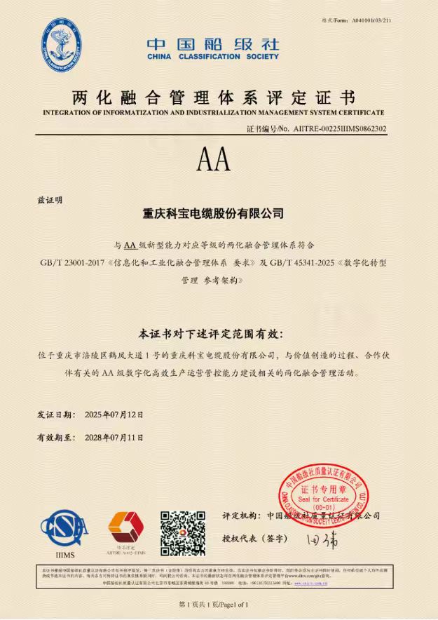 兩化融合管理體系評定證書