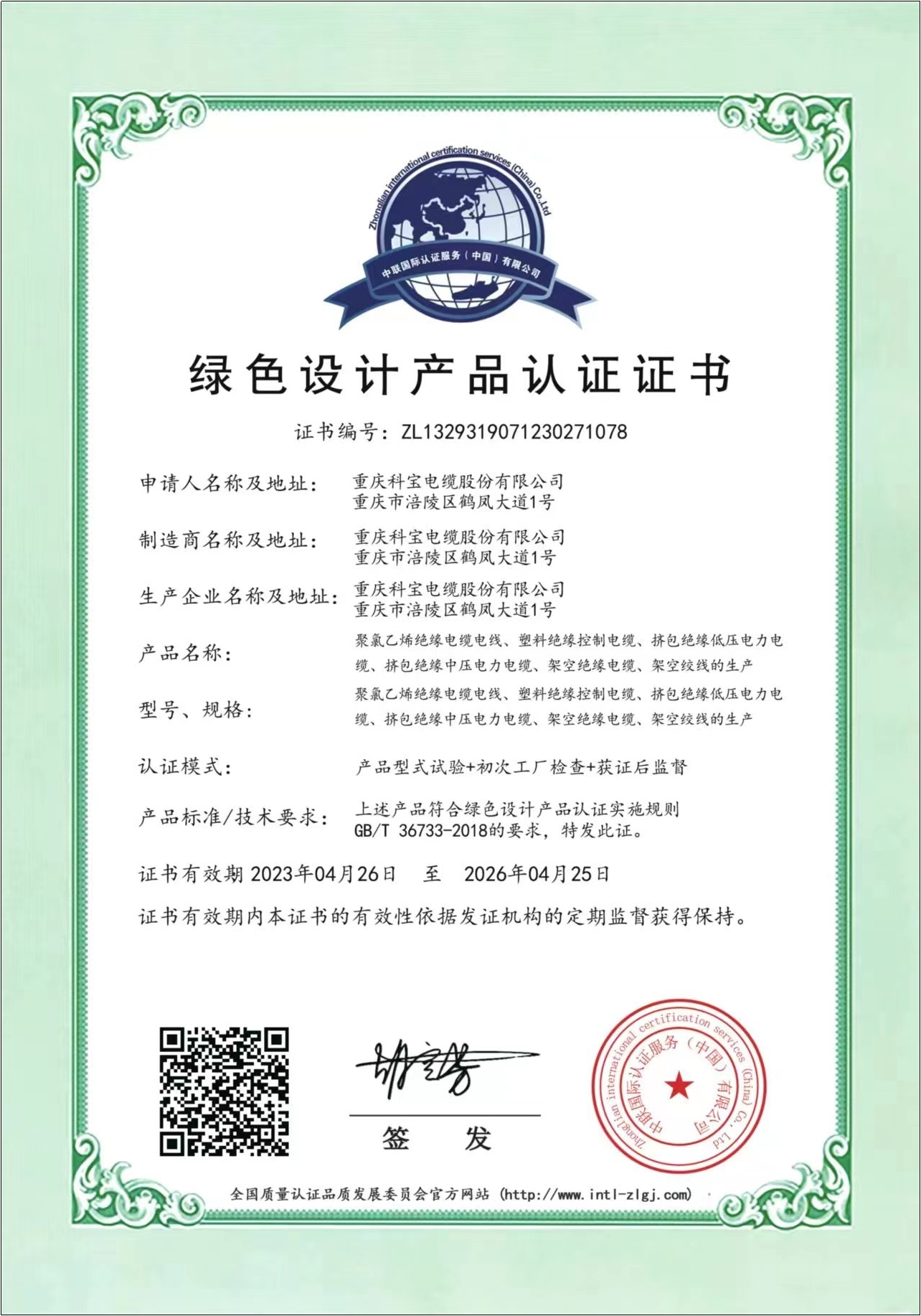 綠色設(shè)計產(chǎn)品認(rèn)證證書