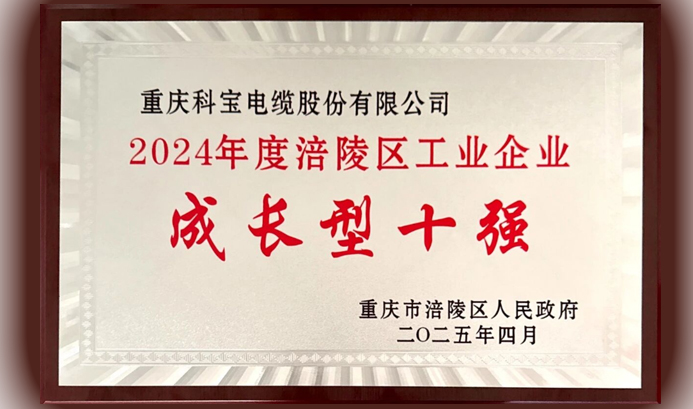 喜報|科寶電纜榮膺涪陵區“2024年度成長型十強企業”稱號